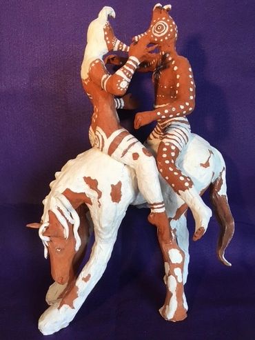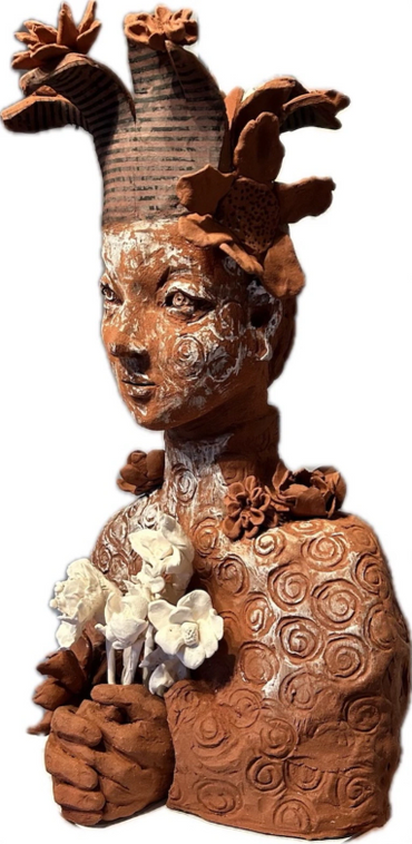 Using both terracotta and mixed media, I aim to celebrate the expressive potential of the human form. The tactile swirl patterns, floral motifs, and celestial shapes are not just decorative; they serve as visual metaphors for cycles, growth, and transformation. The materials I choose—raw clay, matte finishes, and metallic accents—emphasize the organic and grounding nature of the feminine spirit.